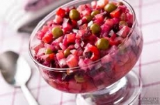 популярный в России и других странах бывшего СССР салат из отварных овощей, свежей капусты, маринованных огурчиов и горошка, без добавления лука.